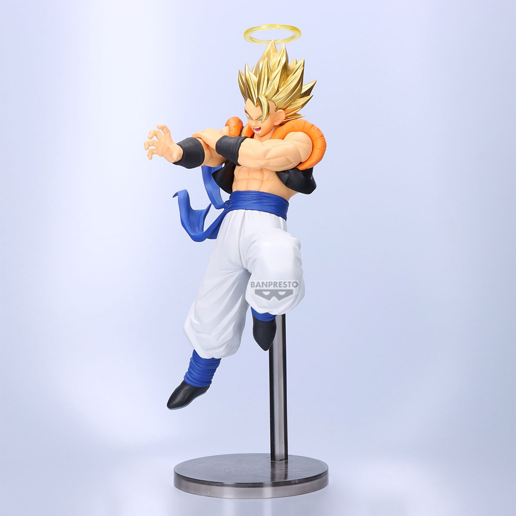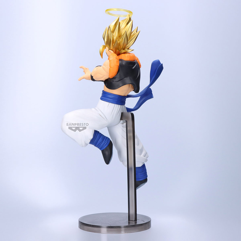 Feiern Sie das 10-jährige Jubiläum von Dragon Ball Z Dokkan Battle mit dieser beeindruckenden Gogeta-Figur von Banpresto! Die detailreiche Darstellung zeigt ihn in einer kraftvollen Pose mit leuchtendem Super-Saiyajin-Haar und einem Heiligenschein, der seinen legendären Status unterstreicht.