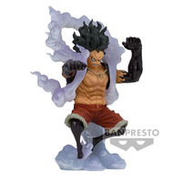 Erlebe Monkey D. Luffy in seiner explosiven Gear 4: Snakeman-Form! Diese beeindruckende King of Artist-Figur von Banpresto fängt Luffy inmitten seines Kampfes mit voller Energie und dynamischer Pose ein. Mit aufgepumptem Oberkörper, wild wehenden Haaren und entschlossenem Blick strahlt er pure Kampfkraft aus – ein Tribut an einen der spektakulärsten Momente im One Piece-Universum.